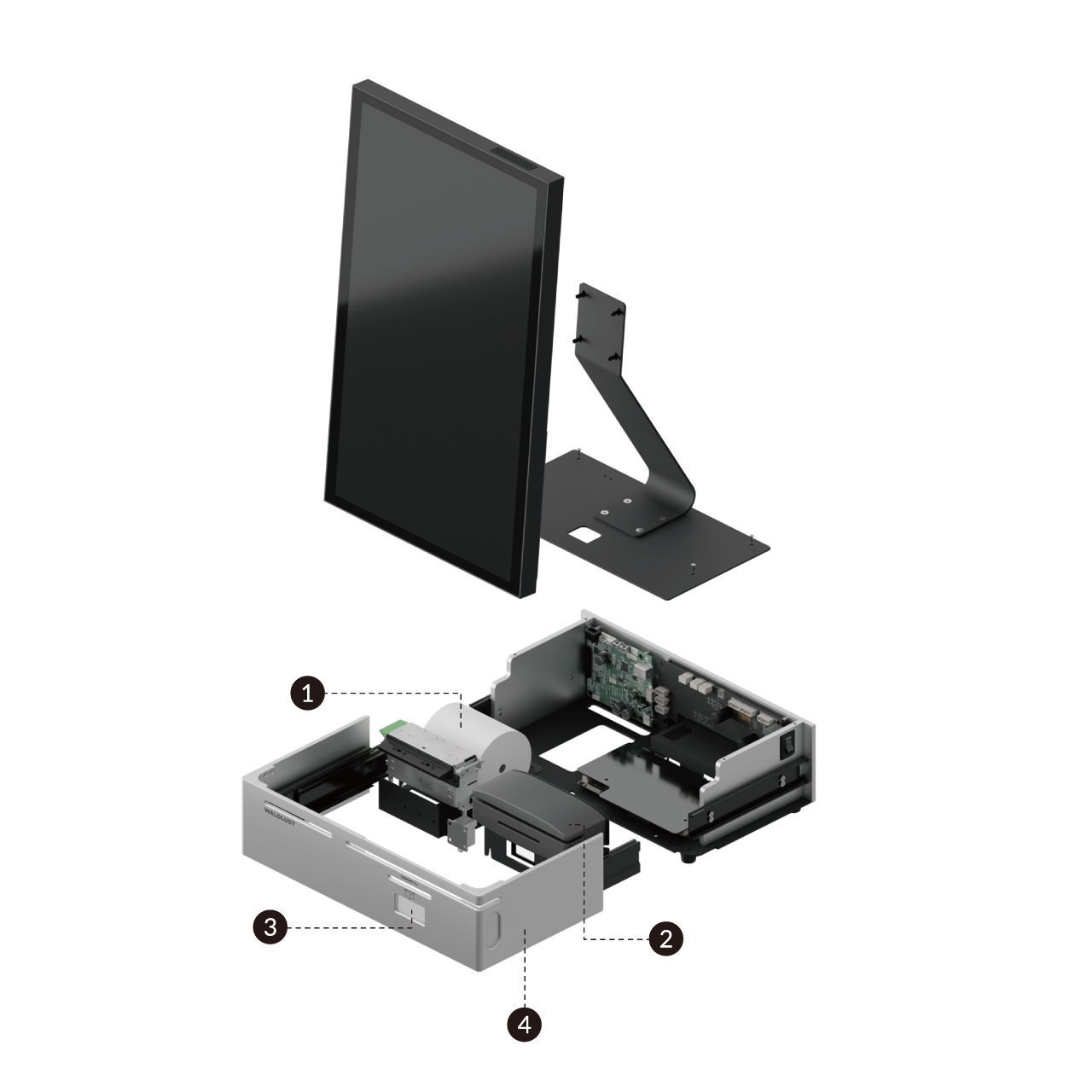 내외부로 복잡한 매장운영 주변기기를 통합하고,견고한 내구성과 사용성이 뛰어난 키오스크입니다.